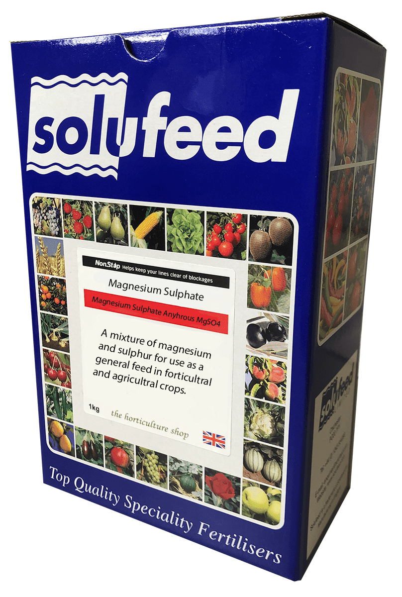 Magnesium sulphate is usually supplied as Epsom Salts, which contain a lot of water-of-crystallisation. This form of magnesium sulphate contains no water, and so the nutrients are much more concentrated, making it easier to use, handle and store.